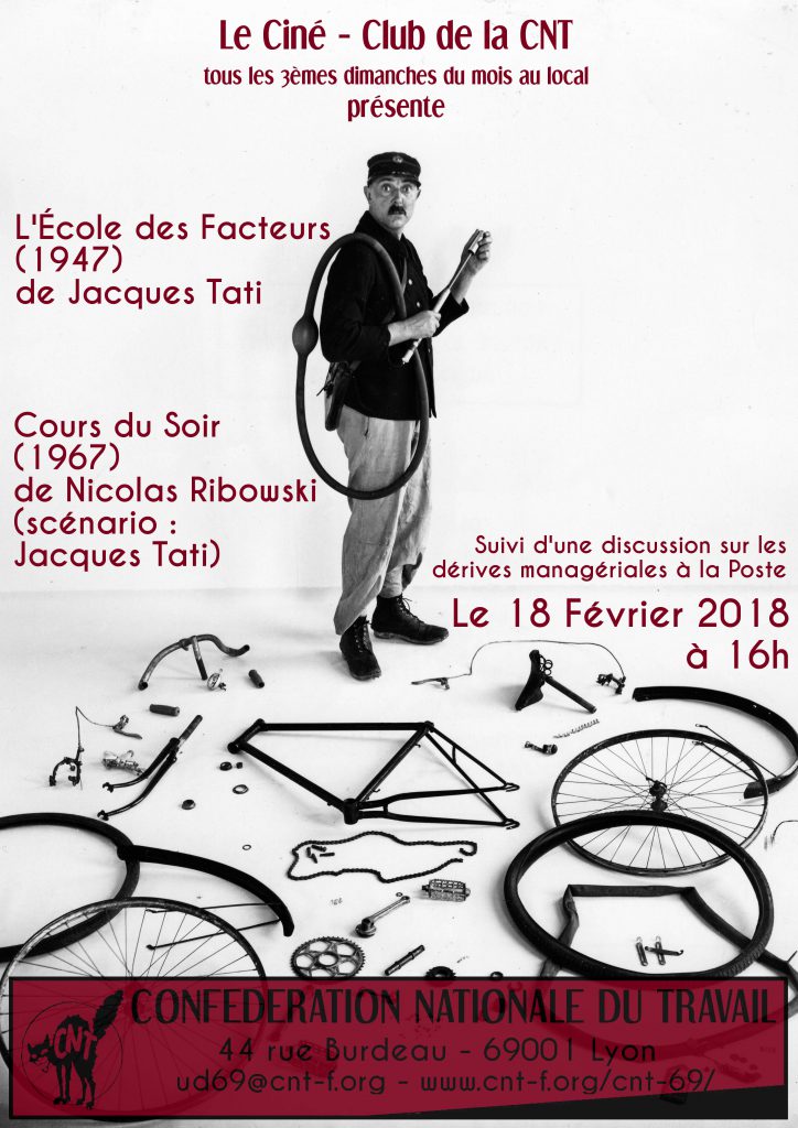 Ciné-Club du Dimanche 18 Février – Jacques Tati – proposé par le syndicat CNT PTT 69 –