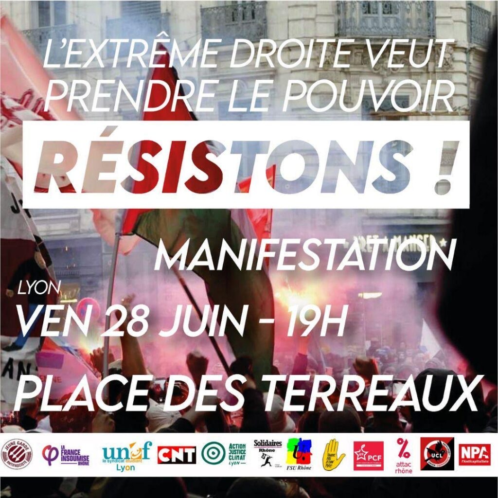 L’extrême droite veut prendre le pouvoir, Résistons ! Manifestation vendredi 28 juin !